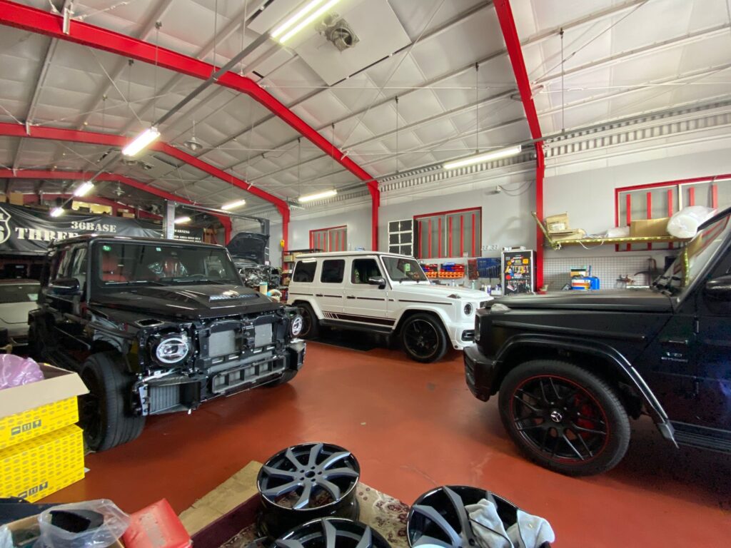 本社から車で3分の場所に専用ファクトリーを構え、事故修理・鈑金・塗装からレストアまで対応。カスタムペイントの専門スタッフも常駐しています。